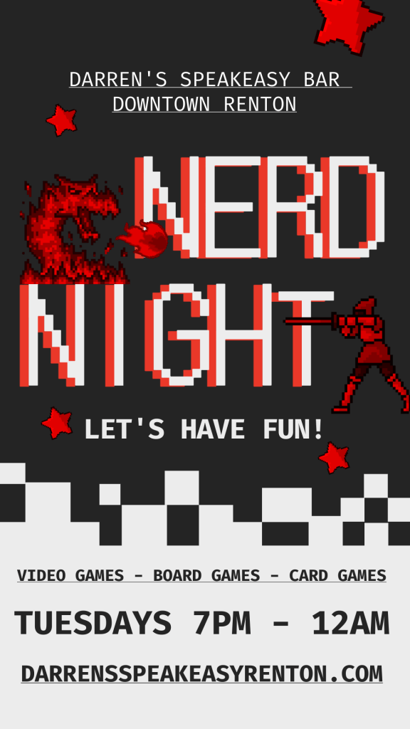 Nerd Night Every Tuesday Night at 7pm – 12am! Bring your own games and play!